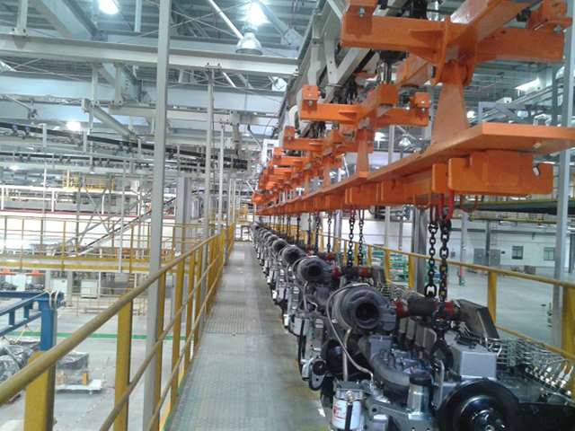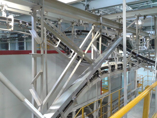 此項(xiàng)目總包方為日本大福,作為項(xiàng)目電氣系統(tǒng)施工管理和調(diào)試以及機(jī)械部分的完善、改建的承包方,我們在項(xiàng)目地(柳州)度過了整個2013年。本系統(tǒng)包含800多米長的四條空中懸鏈,三臺皮帶升降機(jī),并控制和噴涂機(jī)器人的協(xié)調(diào)工作。本項(xiàng)目于2013年8月投產(chǎn),優(yōu)質(zhì)服務(wù)贏得了客戶信賴,我們至今仍提供遠(yuǎn)程技術(shù)支持服務(wù)。